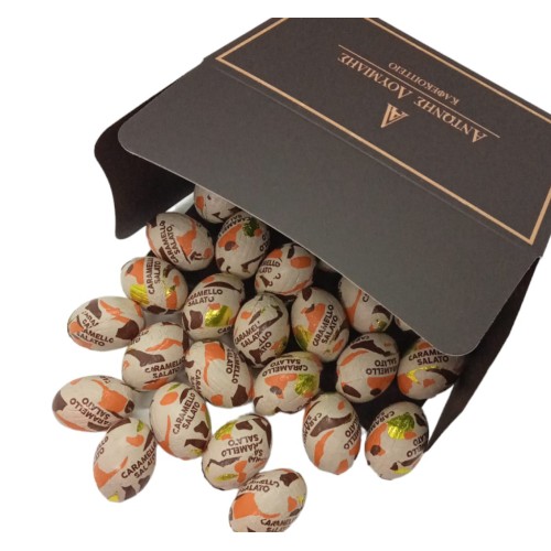 Σοκολατένια αυγουλάκια 12γρ Γάλακτος με Καραμέλα - Αλάτι! Περίπου 31 τεμ/380γρ Περίπου 80 τ..