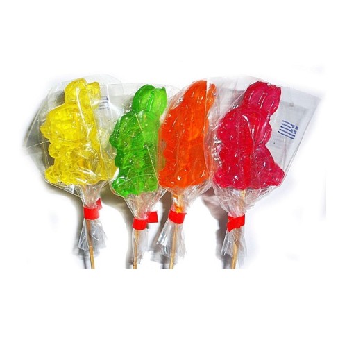 Ελληνικό γλειφιτζούρι από καραμέλα Πασχαλινός λαγός Σε διάφορους χρωματισμούς Περίπου 50γρ..