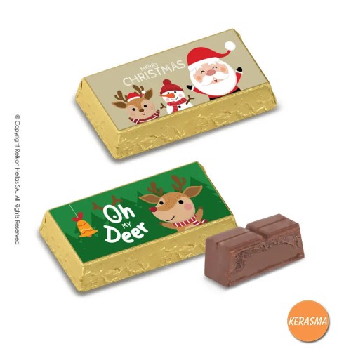 Σοκολατάκια γάλακτος με καταπληκτικό χριστουγεννιάτικο περιτύλιγμα. Βάρος 1 πλακιδίου 30γρ, δηλαδ..